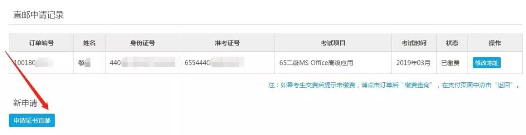2.考生须使用本次报名的姓名和有效身份证件号进行申请,并填写有效的邮寄地址和联系电话,收件人须为考生本人。